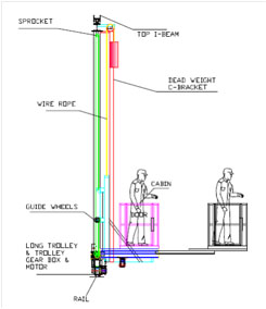 The lift travels on a guide rail system with a lower rail anchored to the floor and an upper rail mounted to the wall of the booth or other structure. The lift is controlled by the operator from a control console (joystick) located in the front of the platform. This allows the worker to face forward and observe the area as they move the lift. Properly maintained, platforms will provide many years of trouble free operation while increasing the safety and productivity of your workers.