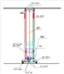 10. Auxiliary Flex Track: 1" x 4" flexible track to carry breathing air and paint lines from top of mast, out to the operator platform.