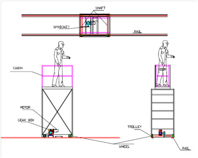 As the name indicates these platforms are manually operated and designed to operate in multiple axis, i.e. X- Axis, Y- axis, Z- Axis. X-Axis: - The horizontal movement of the entire lifts, lengthwise in a booth or along a structure. Y-Axis: - The horizontal movement of the operator platform in and out from the back of the lift. Z-Axis: - The vertical travel of the operator platform up and down on the lift mast.